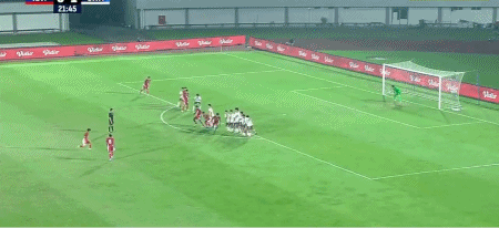 第23分钟,印尼获得禁区前沿任意球机会,杰里科操刀主罚,皮球击中中国队人墙折射入网,印尼扳平比分,1-1。