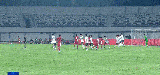 第22分钟,印尼队中路定位球机会,杰里科直接打门打在U17国足球员身上反弹破门,印尼队扳平比分。