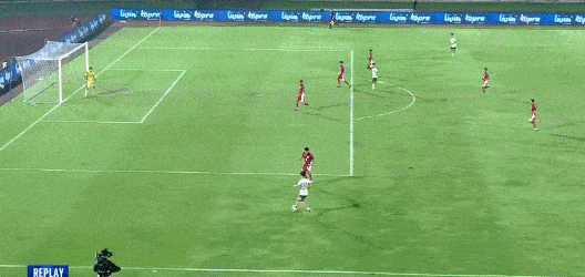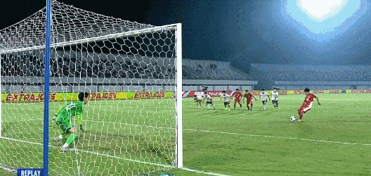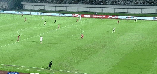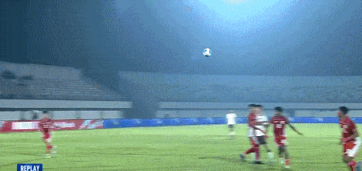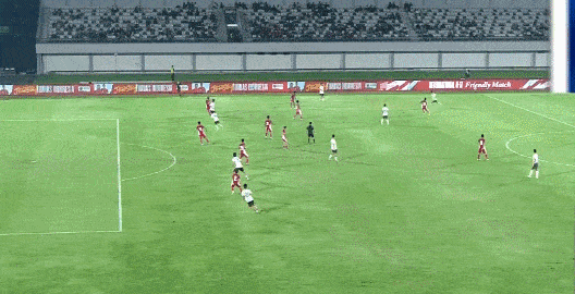 第7分钟,印尼门将开球失误,打在何思凡身上折射险些撞入球门。