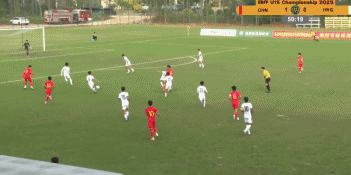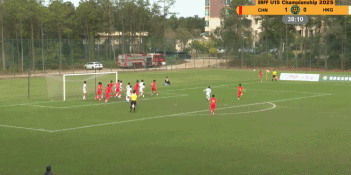 第38分钟,李宇轩传中,后点扫射被挡出底线,角球进攻中国队进球被吹。