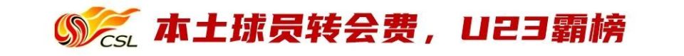 今年冬窗国内球员转会费排名前5的球员,全部都是23岁以下的年轻球员,前7仅有1人年龄在23岁以上。相比之下,去年冬窗本土球员转会费前10仅2人是U23球员——今年中超冬窗,某种程度上可以被称为“U23冬窗”。