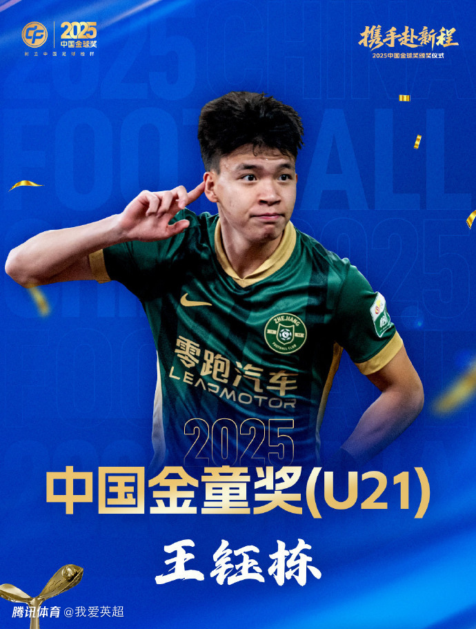 19岁的王钰栋击败蒯纪闻和李新翔,2025赛季,王钰栋代表浙江队出战31场,收获12球5助,其中中超28场11球5助,成为中超本土射手王。此外,他已经为国足出战6次并收获1球。