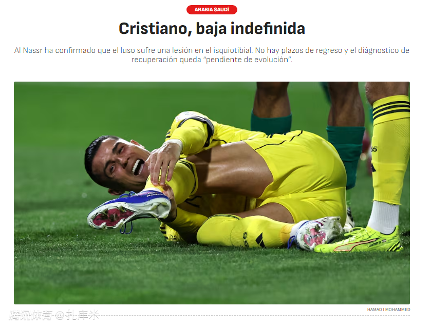 根据西班牙媒体《阿斯报》的报道,虽然C罗的私人飞机离开了沙特,但C罗目前仍然滞留在沙特,但球员遭遇腿后肌受伤,康复时间未确定。