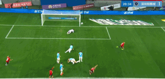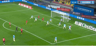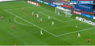 上半场补时第1分钟,胡荷韬门前停球后近距离推射得手,蓉城3-1领先新鹏城。