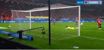 第36分钟,费利佩做球,罗慕洛禁区前沿凌空抽射,皮球稍稍高出横梁。
