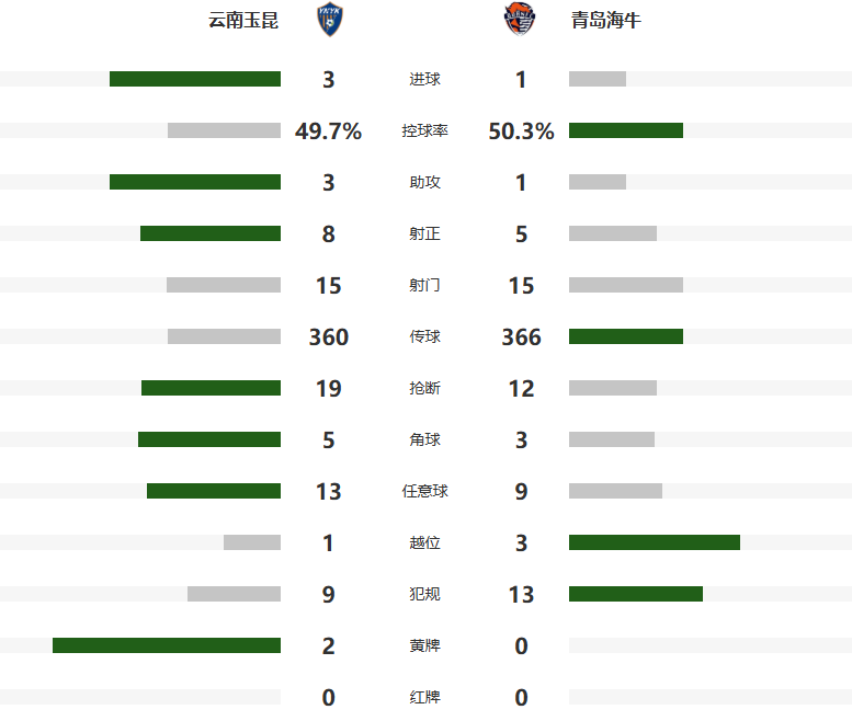 北京时间3月7日19点35分,2026赛季中超首轮,云南玉昆主场对阵青岛海牛。克莱伯第12分钟打破僵局,弋腾第16分钟扩大比分,侯永永半场补时破门。叶海亚下半场扳回一球,玉昆最终3-1取得开门红,积3分位列第2位,而海牛积-7分位列倒数第二位。