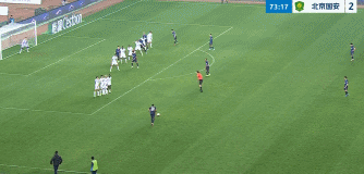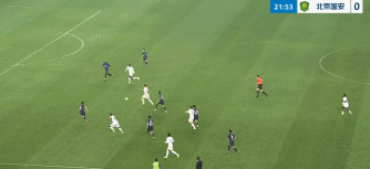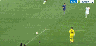 第52分钟,方镜淇冲出禁区解围失误,张玉宁拿球小角度兜射远角得手,北京国安将比分扩大为2-0。