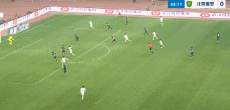 第45分钟,王刚右路底线附近传中,法比奥包抄到位头球攻门顶入死角,北京国安打破僵局,1-0。