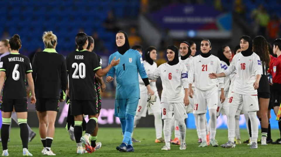 关于昨晚比赛赛后,《澳大利亚七号电视台》报道称,当巴士缓缓驶上公路时,伊朗球员们被拍到正在拍摄抗议活动的照片。骚乱发生在菲律宾队的萨拉-埃格斯维克和钱德勒-麦克丹尼尔攻入两粒决定比赛胜负的进球之后,这两粒进球让伊朗女足输掉比赛,最终伊朗女足在A组排名第四。赛后伊朗女足乘坐大巴离场时,抗议者围堵巴士,一名球员从窗户向抗议者做出“国际求救信号”。