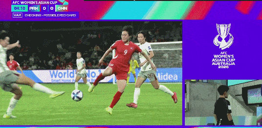 开场仅3分钟,邵子钦遭朝鲜女足9号金成庆蹬踏膝盖,尽管VAR介入,当值越南籍主裁却在查看回放后仅出示黄牌。