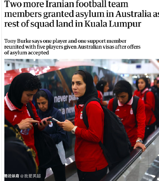 结束了亚洲杯参赛任务的伊朗女足,已于昨晚从悉尼乘机离开澳大利亚,飞往马来西亚首都吉隆坡。此前来自澳大利亚媒体的报道称,又有两位伊朗女足成员在登机前最终选择留下、不回国。