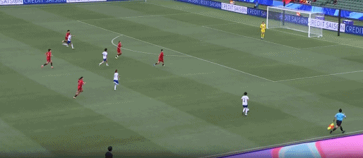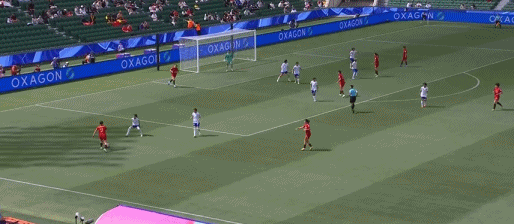 第33分钟,张馨左路斜传中,禁区内的3位队友包抄,却未能形成攻门。