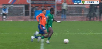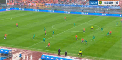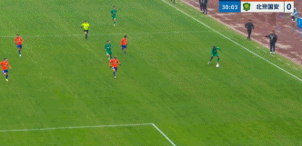 第30分钟,北京国安左路传中,张玉宁凌空抽射未能命中目标。