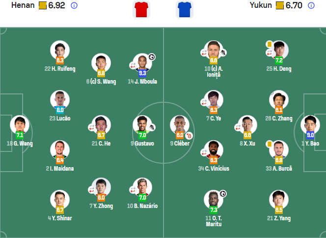 中场:7-叶楚贵(72’30-侯永永)、8-徐新(94’36-费尔南多)、10-约尼查(72’27-韩子龙)、34-卡约(86’19-黄紫昌)、11-奥斯卡