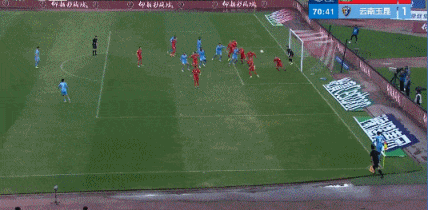 第71分钟,玉昆主罚角球到门前,奥斯卡头球攻门,王国明门前倒地将球扑出。