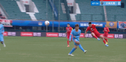 第48分钟,河南反击中送出斜传,钟义浩外围右脚爆射稍稍高出。