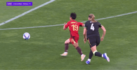第23分钟,张琳艳突入禁区,被出击的阿诺德扑倒,中国女足获得点球机会,张琳艳亲自操刀主罚命中,1-1扳平比分。
