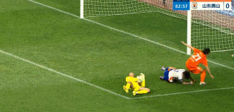 第23分钟,克雷桑主罚禁区前沿任意球,鲍亚雄无反应,皮球击中横梁弹出。