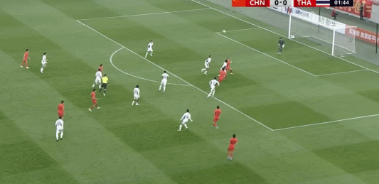 第2分钟,泰国后卫解围失误,王博豪扫射被门将挡出,向余望转身扫射击中横梁,主裁判判罚手球在先。