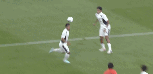 第22分钟,马玛禁区弧停球之后顺势右脚凌空扫射破门,0比1!