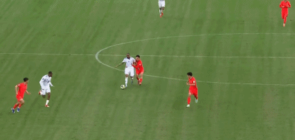 第26分钟,王钰栋底线强行突破,后卫将球护给门将,主裁判判罚回传门将,国足获得禁区内任意球,韦世豪右脚劲射被后卫阻挡。