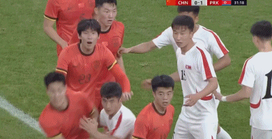 朝鲜U23首发阵容:1-金龙益;16-金有成、19-金成慧、24-郑辉男、12-崔龙日、17-崔国、15-罗明成、13-金权成、10-李日成、8-李元光(20’23-安庆雄)、14-李光明