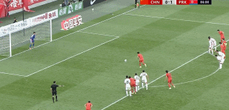 第55分钟,中国队左路传中,李新翔高高跃起头球攻门,但未能命中目标。