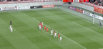 第63分钟,金权成操刀主罚禁区前沿任意球,皮球越过人墙擦着立柱飞出底线。