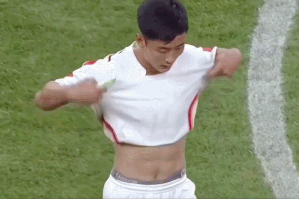然而即便如此,朝鲜U23球员依然体能充沛,疯跑全场,在身体对抗方面和拼抢方面,让U23国足吃尽苦头。朝鲜本场的进球功臣14号梁光明比赛中擦汗时,更是不经意间秀出了自己令人羡慕的8块腹肌。