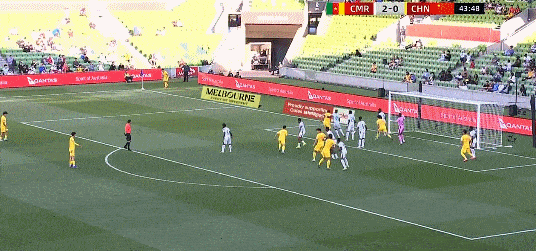 第9分钟,喀麦隆战术角球开出,纳吉达传中,前点头球一蹭,国足后防线集体漏人,阿里乌姆后点爆射再下一城,喀麦隆2-0国足。