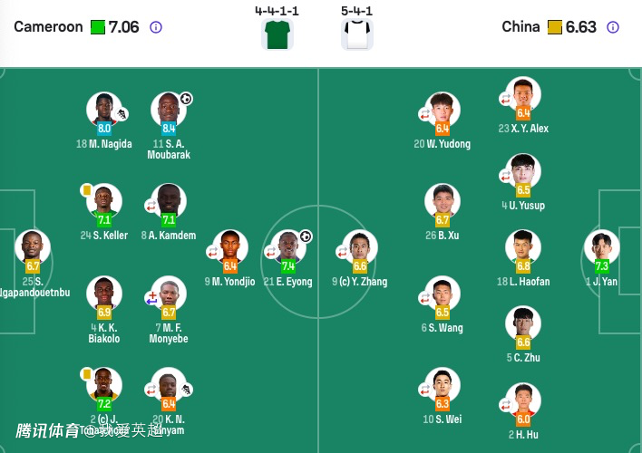 替补未出场:1-努克乌、3-彻·马龙、5-恩贡、6-安比纳、12-恩佐莫、13-永古瓦、16-埃帕西、17-科托、25-奥斯马努