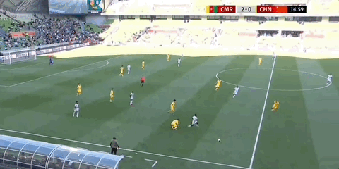 第15分钟,张玉宁铲断对手,随后王钰栋拿球略显犹豫,被喀麦隆球员轻松抢断。