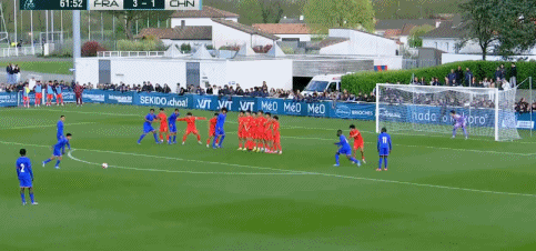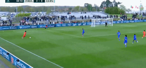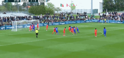 4分钟后,法国队再次利用角球机会,托雷斯门前抽射完成梅开二度,上半场仅32分钟,U16国足便已经0-3落后。