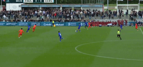 第79分钟,刘宇洋内切射门,球被法国门将扑出。