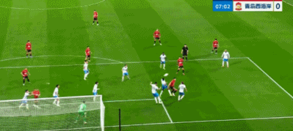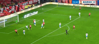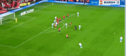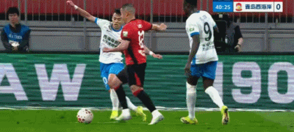 第22分钟,青岛西海岸将球吊入禁区,阿齐兹头球摆渡,皮球擦柱而出。