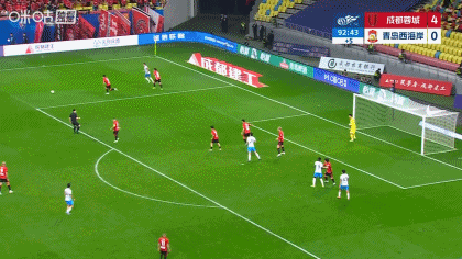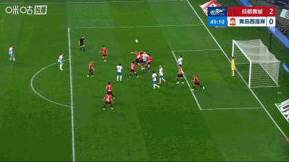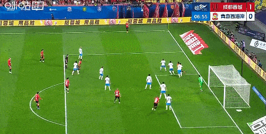 补时阶段,阿齐兹乱战捅射为西海岸扳回一城,1-4蓉城。
