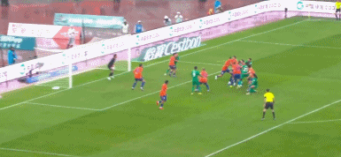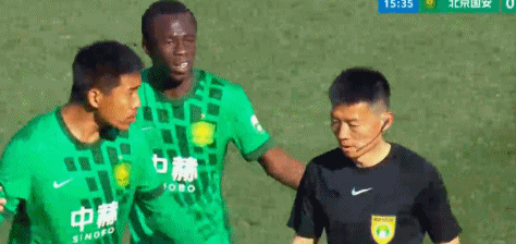第13分钟,邦本宜裕主罚右侧角球,球击中孔特右手,主裁判并未第一时间做出判罚,这让辽宁铁人球员非常不满。