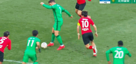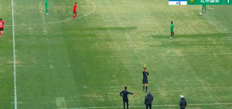 比赛开始仅33秒,韩镕泽冲出禁区双手触球,并且将球投向本方禁区。主裁判向韩镕泽出示黄牌,并且判罚给北京国安禁区外任意球。