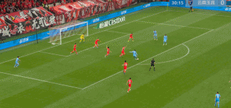 第14分钟,杨希头球摆渡,刘祝润攻门莱昂纳多跟进得手,但VAR介入后将球吹出。