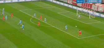上半场补时阶段,蒯纪闻接头球摆渡,领球杀入禁区推射得手,但越位在先进球无效。