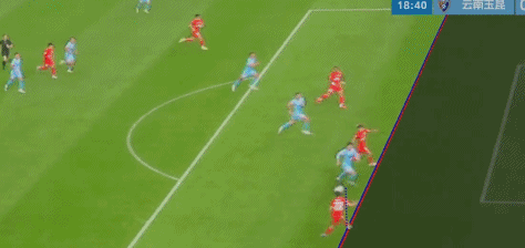 比赛的第14分钟,杨希禁区内头球似传似射,刘祝润铲射错过落点,莱昂纳多门线补射破门。随后,视频助理裁判介入判罚,5分钟之后,视频助理裁判要求主裁判回看慢镜头。从慢镜头来看,在杨希头球瞬间,刘祝润处于越位位置,进球无效。