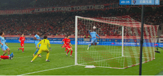 第14分钟,杨希头球摆渡,刘祝润攻门莱昂纳多跟进得手,但VAR介入后将球吹出。