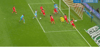 第74分钟,玉昆任意球送入禁区,颜骏凌扑救脱手,张宸梁补射中柱。