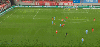 上半场补时阶段,蒯纪闻接头球摆渡,领球杀入禁区推射得手,但越位在先进球无效。