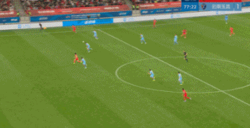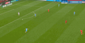 伤停补时第7分钟,云南玉昆后场出球失误,武磊获得单刀机会,但停球时滑倒。