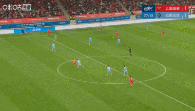 伤停补时第7分钟,云南玉昆后场出球失误,武磊再次获得单刀机会,结果他却在自家主场停球滑倒了。再次错失良机后,武磊都尴尬笑了。