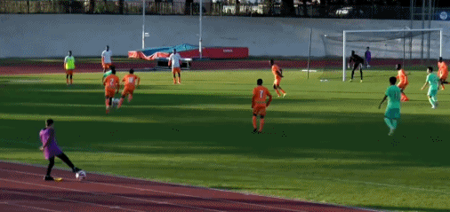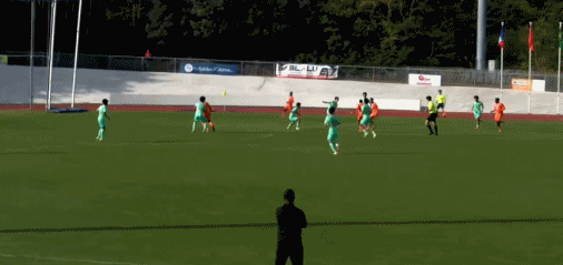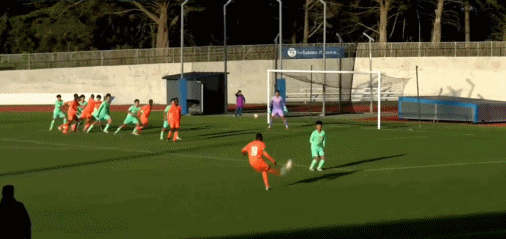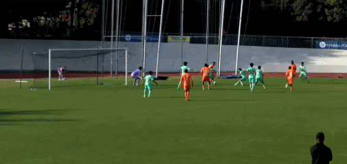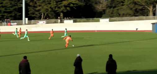 第35分钟,U16国足展开反击,刘凯源内切远射,球被门将没收。