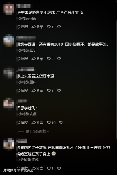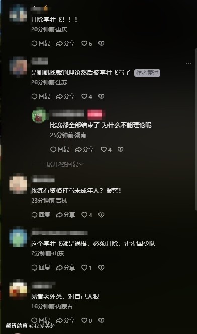 一些网友也纷纷跑到李壮飞社媒下面留言:“必须严查严惩!”:“为什么要把情绪宣泄到一个16岁的孩子身上?”:“请你马上滚出教练组!”