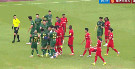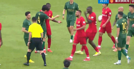 双方球员随即一拥而上,发生了口角,浙江队球员集体质疑主裁判的判罚。起身之后,米特里策大骂仍然倒在草坪上的李镇全,再次引发了双方球员的冲突。