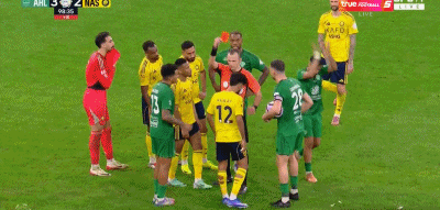 补时第6分钟,迈拉希击打菲利克斯,裁判出示红牌将其罚下,吉达国民少打1人。
